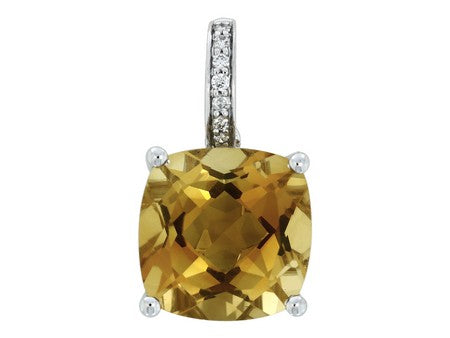 14K White Gold Citrine & Diamond Pendant