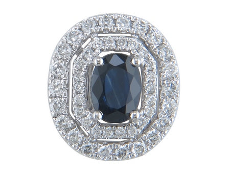 18K White Gold Sapphire with Diamond Double Halo Pendant