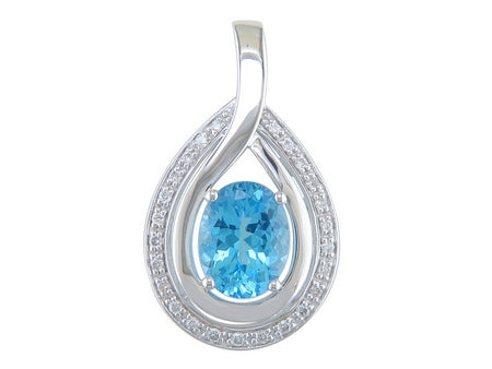 14K White Gold Blue Topaz with Diamond Accent Pendant
