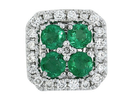 14K White Gold Emerald with Diamond Halo Pendant, Not Eligible for Memo
