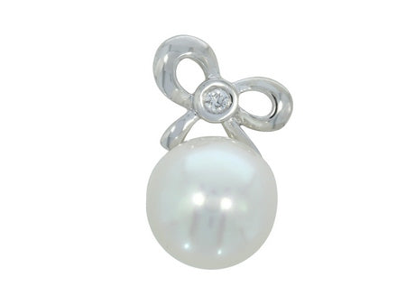 10K White Gold Pearl with Diamond Accent Bow Pendant
