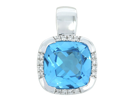 14K White Gold Blue Topaz with Diamond Accent Pendant