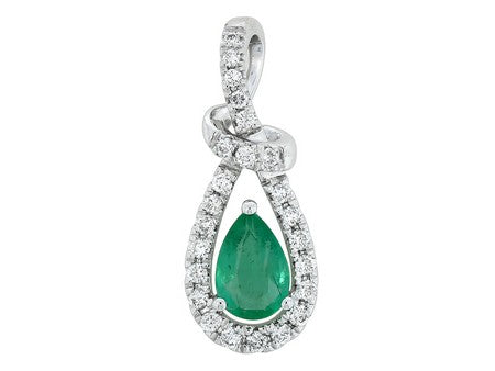 14K White Gold Emerald with Diamond Knot Pendant