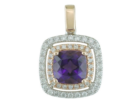 14K White & Rose Gold Amethyst & Diamond Double Halo Pendant