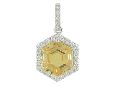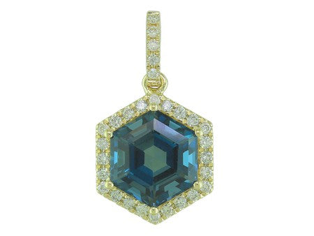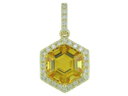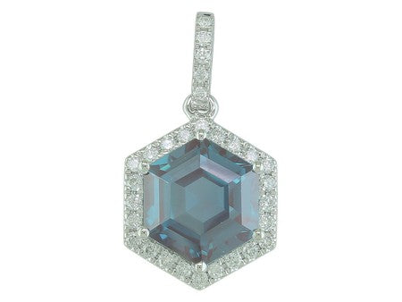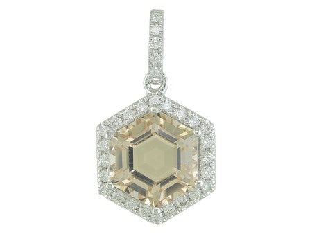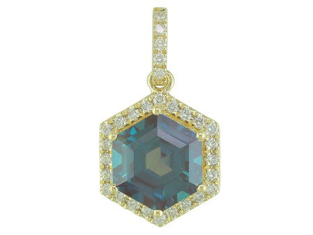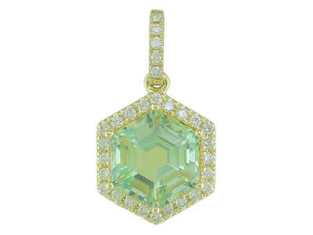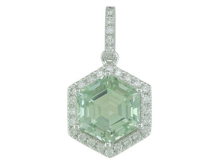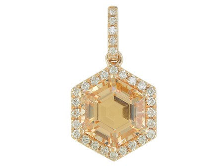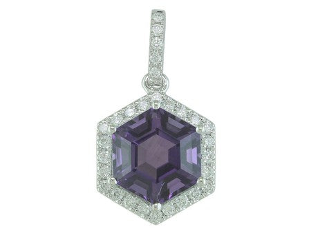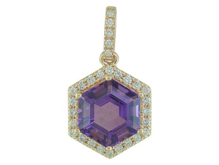 14K Rose Gold Hexagon Amethyst with Diamond Halo Pendant