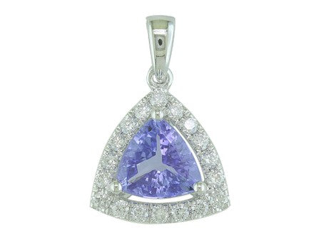 14K White Gold Tanzanite with Diamond Halo Pendant