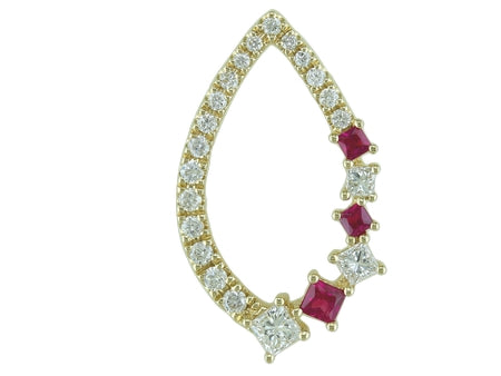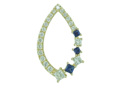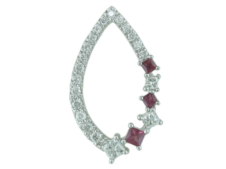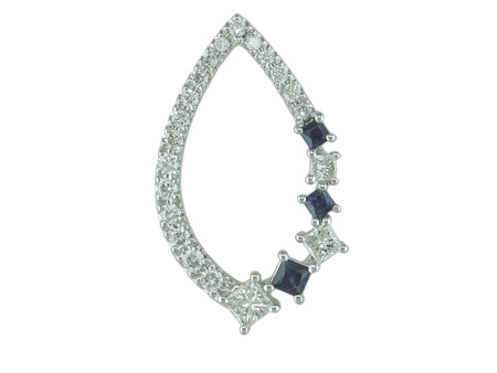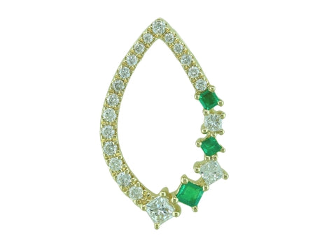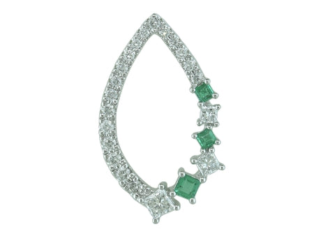 14K White Gold Emerald & Diamond Shattered Teardrop Look Pendant