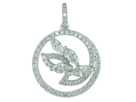 14K White Gold Diamond Leaf Swirl Pendant