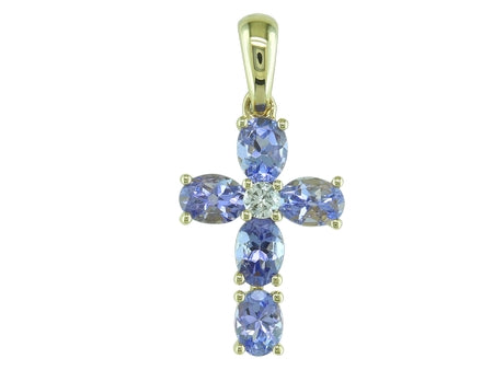 14K Yellow Gold Tanzanite & Diamond Cross Pendant