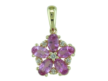 14K Yellow Gold Pink Sapphire & Diamond Flower Pendant