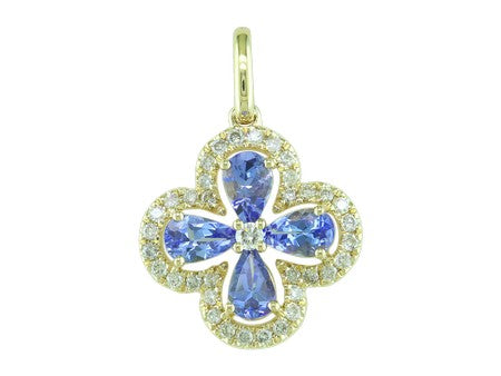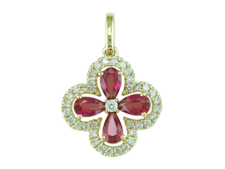 14K Yellow Gold Ruby & Diamond Flower Pendant