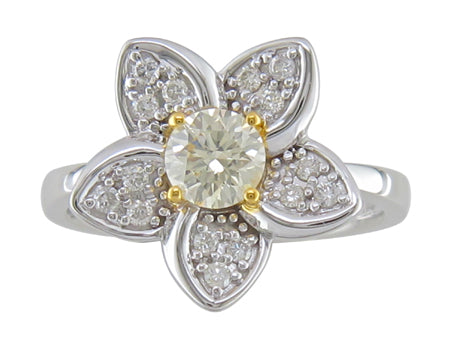14K White & Yellow Gold Flower Halo Diamond Engagement Ring