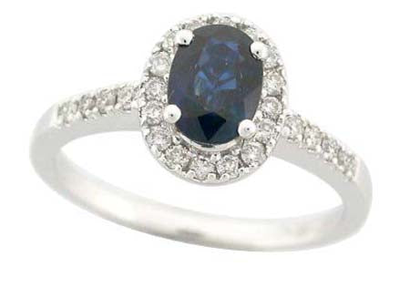 14K White Gold Sapphire & Diamond Halo Ring