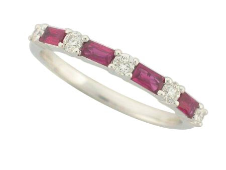 14K White Gold Ruby & Diamond Alternating Band