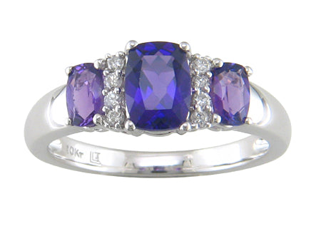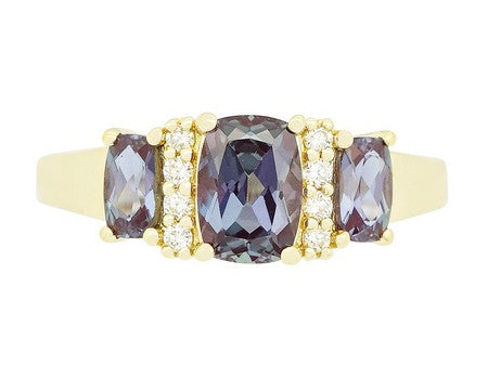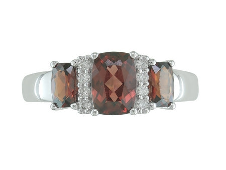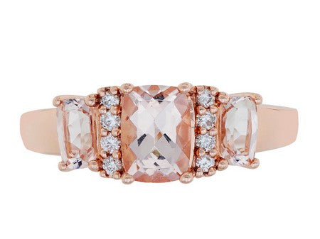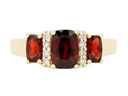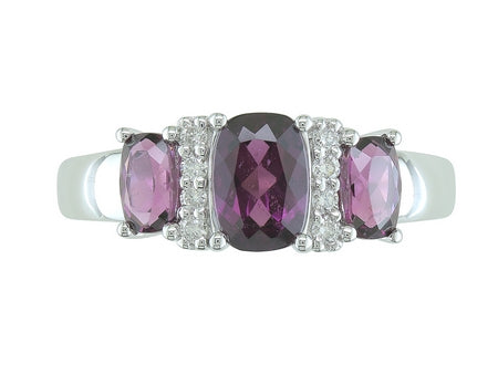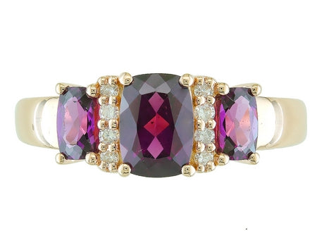 14K Rose Gold Rhodolite Garnet & Diamond Three Stone Ring
