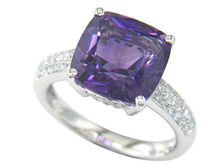 14K White Gold Amethyst & Pave Set Diamond Ring