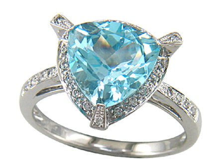 14K White Gold Sky Blue Topaz & Diamond Halo Ring