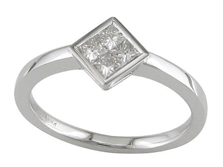 18K White Gold Kite Set Quad Center Diamond Solitaire Engagement Ring