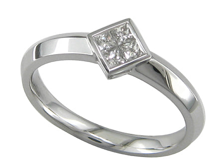 18K White Gold Bezel Set Diamond Solitaire Engagement Ring