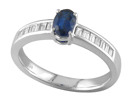 18K White Gold Sapphire with Channel Set Diamond Accent Ring