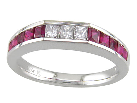 18K White Gold Ruby & Diamond Band