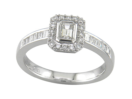 18K White Gold Bezel Set Diamond with Halo Engagement Ring