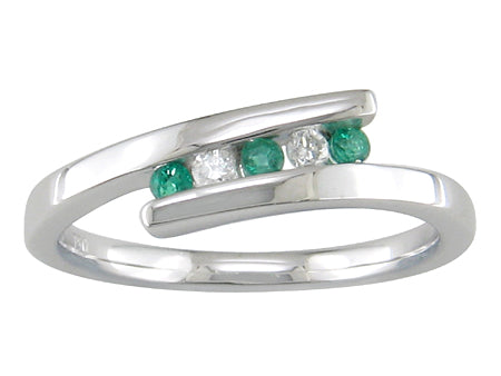 18K White Gold Emerald & Diamond Abstract Split Ring