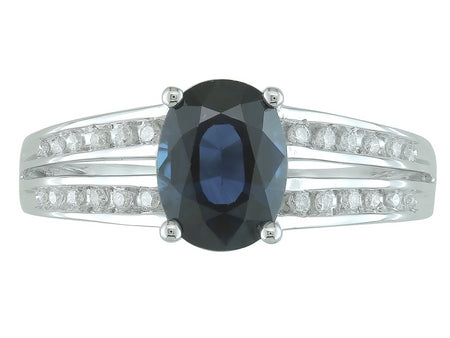 14K White Gold Split Shank Sapphire & Diamond Ring