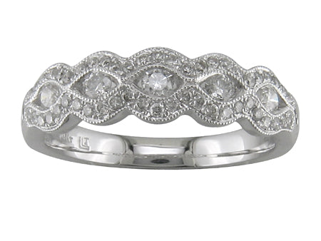 14K White Gold Milgrain Scalloped Diamond Ring