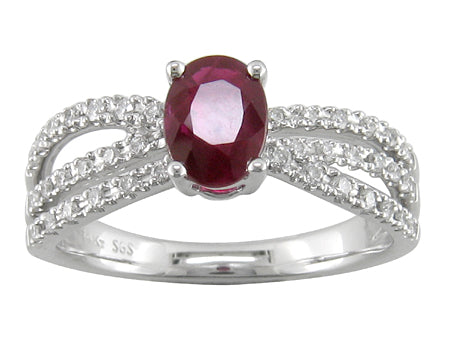 18K White Gold Split Shank Ruby & Diamond Ring