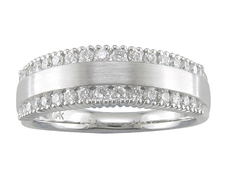 14K White Gold Brushed Metal Diamond Band