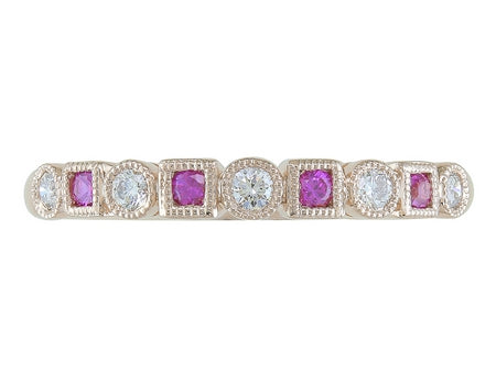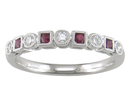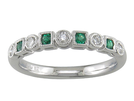 14K White Gold Emerald & Diamond Stackable Ring, Not Eligible For Memo
