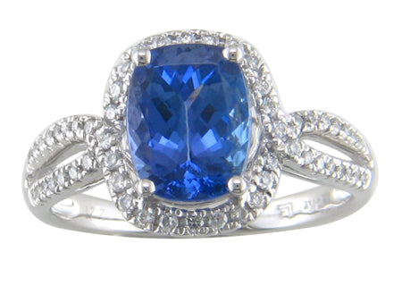 14K White Gold Tanzanite & Diamond Split Shank Ring