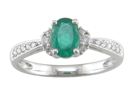 18K White Gold Emerald & Diamond Ring