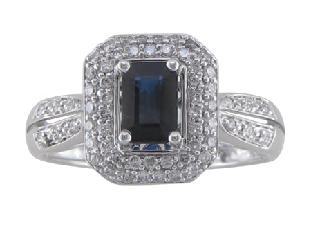 10K White Gold Split Shank Sapphire & Diamond Double Halo Ring