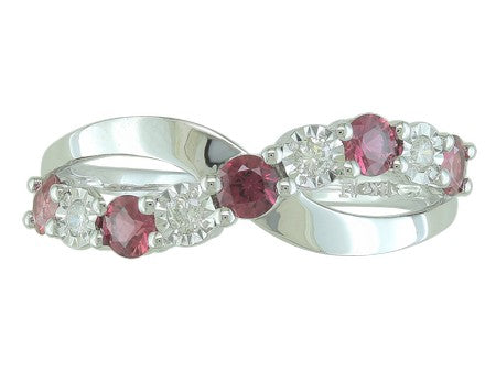 14K White Gold Ruby & Diamond Criss Cross Ring