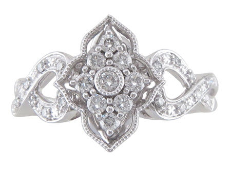 10K White Gold Cluster Center Diamond Ring