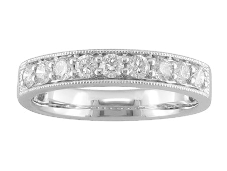 14K White Gold Milgrain Diamond Band