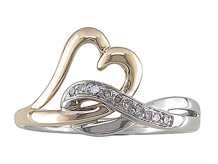 10K Yellow & White Gold Infinity Heart Diamond Ring