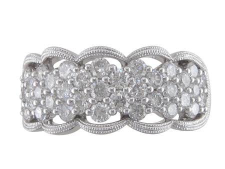 14K White Gold Milgrain Cluster Diamond Ring