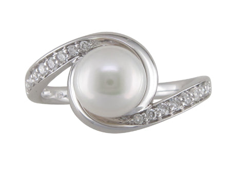 14K White Gold Bypass Pearl & Diamond Ring