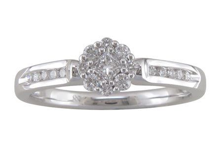 18K White Gold Diamond Cluster with Channel Set Band Engagement Ring