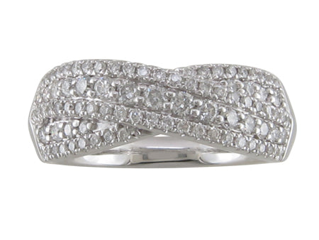 14K White Gold Pave Set Crossover Diamond Band