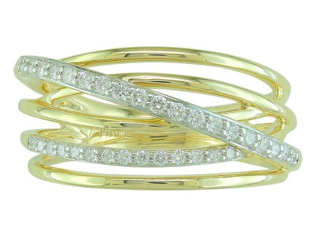 14K Yellow & White Gold Criss Cross Diamond Ring