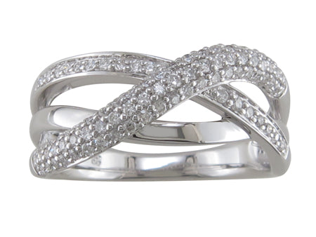 18K White Gold Criss Cross Pave Diamond Ring