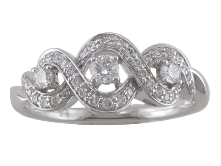 10K White Gold Three Stone Diamond Infinity Ring