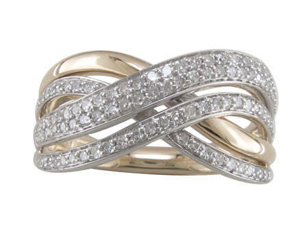 14K Yellow & White Gold Criss Cross Pave Diamond Ring