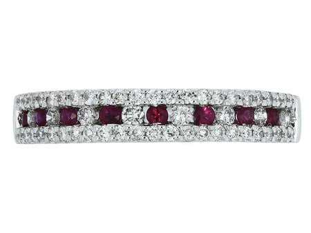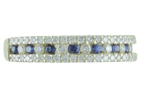 14K White Gold Three Row Diamond Band