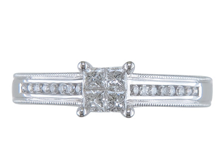 18K White Gold Quad Center Milgrain Diamond Engagement Ring