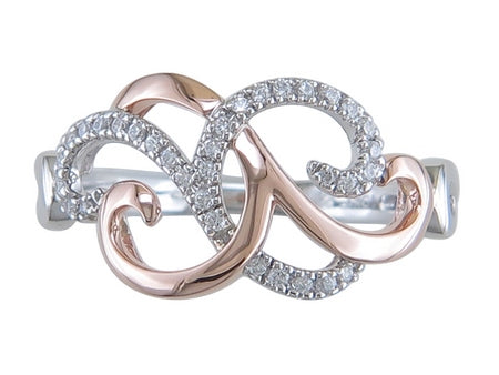 10K White & Rose Gold Swirl Diamond Ring
